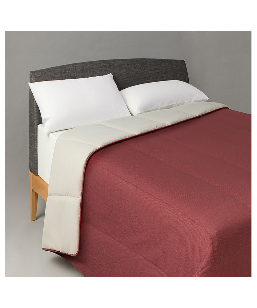 El edredón nórdico Mosaico está confeccionado con tejido de microfibra tacto seda y tecnología Seersucker que brinda ese relieve característico del producto en forma de mosaicos. Es reversible y posee una cara con este efecto y la otra cara lisa con ribete exterior.